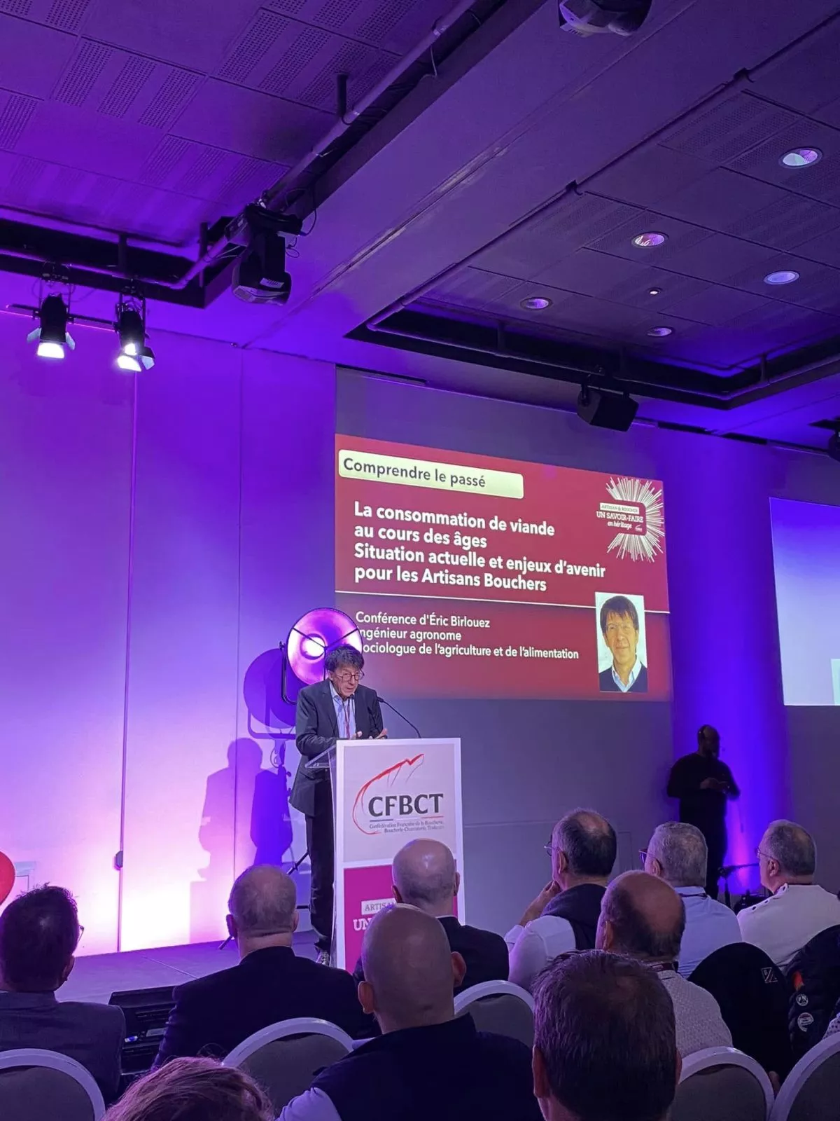 Les conférences et tables rondes ont exploré des thèmes majeurs pour la profession. Éric Birlouez, sociologue, a ouvert les discussions avec une présentation sur l’évolution de la consommation de viande au fil du temps. Il a été suivi par une table ronde réunissant Jean-François Guihard, Éric Birlouez et Pierre Mancini, anthropologue, pour analyser les enjeux contemporains du métier de boucher, notamment de proposer une nouvelle définition du mot « boucher » à l’académie française.